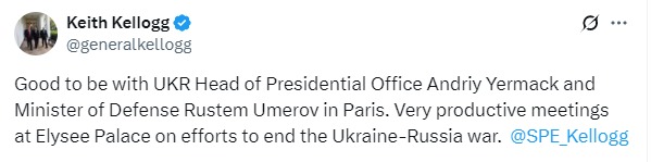 Спецпредставитель Дональда Трампа по Украине Кит Келлог назвал очень продуктивными встречи в Париже, посвященные перемирию в Украине.