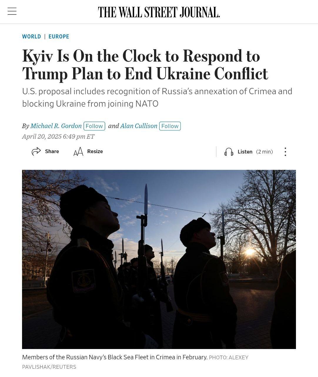 "Принятие некоторых идей администрации Трампа может оказаться трудным для Киева, поскольку Украина отказалась признать, что Россия имеет законные претензии на любую из ее территорий", - предполагает издание.