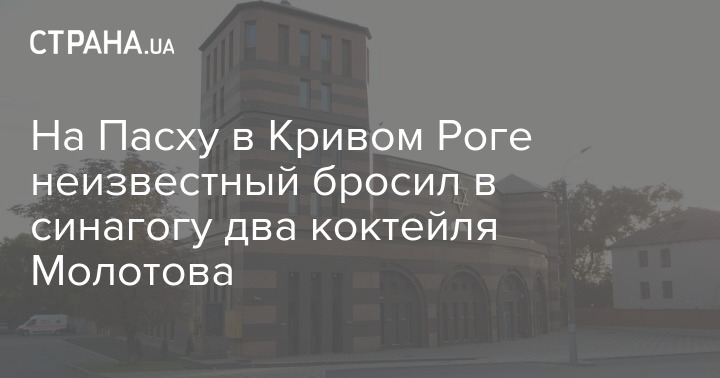 В Кривом Роге Днепропетровской области на Пасху неизвестный метнул две бутылки с коктейлем Молотова в местную синагогу.