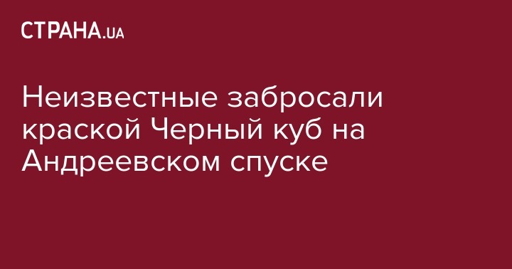 Неизвестные забросали краской Черный куб на Андреевском спуске