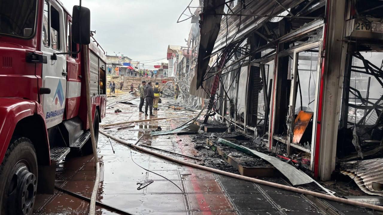 Полностью сгорели около 90 торговых павильонов, еще почти сотня повреждена, сообщает пресс-служба рынка.