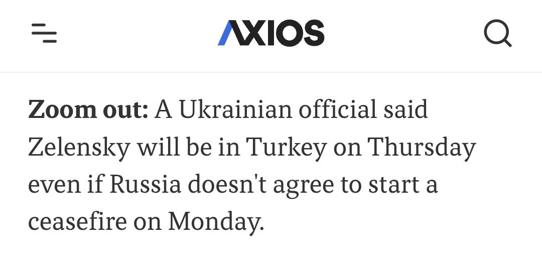 В свою очередь американское издание Axios пишет о том, что Зеленский прилетит в Стамбул для переговоров с Россией, даже если РФ с понедельника не остановит огонь.