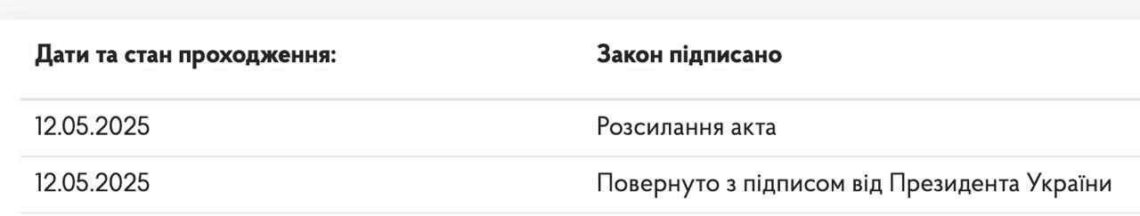 Об этом сообщается в карточке документа на сайте Верховной Рады Украины.