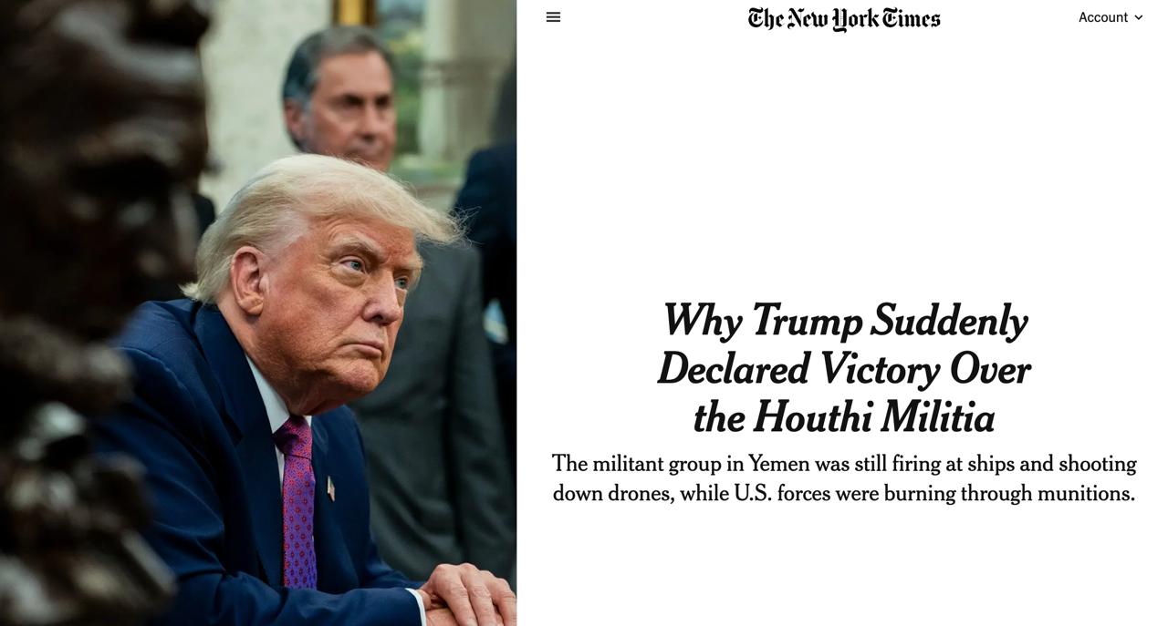 Президент США Дональд Трамп договорился с йеменскими хуситами о прекращении огня, потому что американские бомбардировки не дали никаких результатов, кроме сожженных боеприпасов на миллиард долларов.