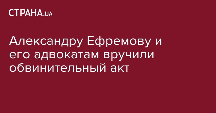 Экс-главе парламентской фракции Партии регионов Александру Ефремову и его адвокатам вручили обвинительный акт по новому делу о посягательстве на территориальную целостность и неприкосновенность Украины и ряд других преступлений.