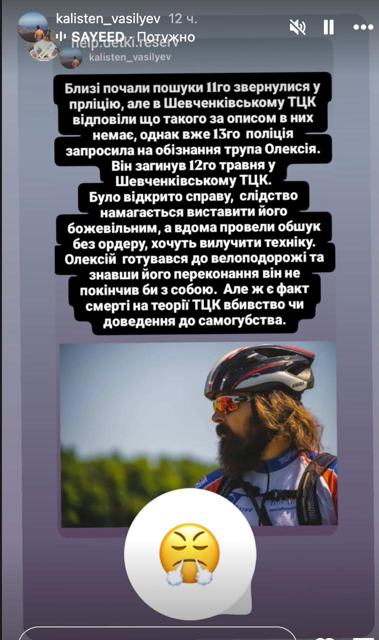 Дома у погибшего был проведен обыск без ордера, с изъятием техники. Родные и друзья Алексея заявляют, что он планировал велопутешествие и не имел признаков суицидальных намерений.
