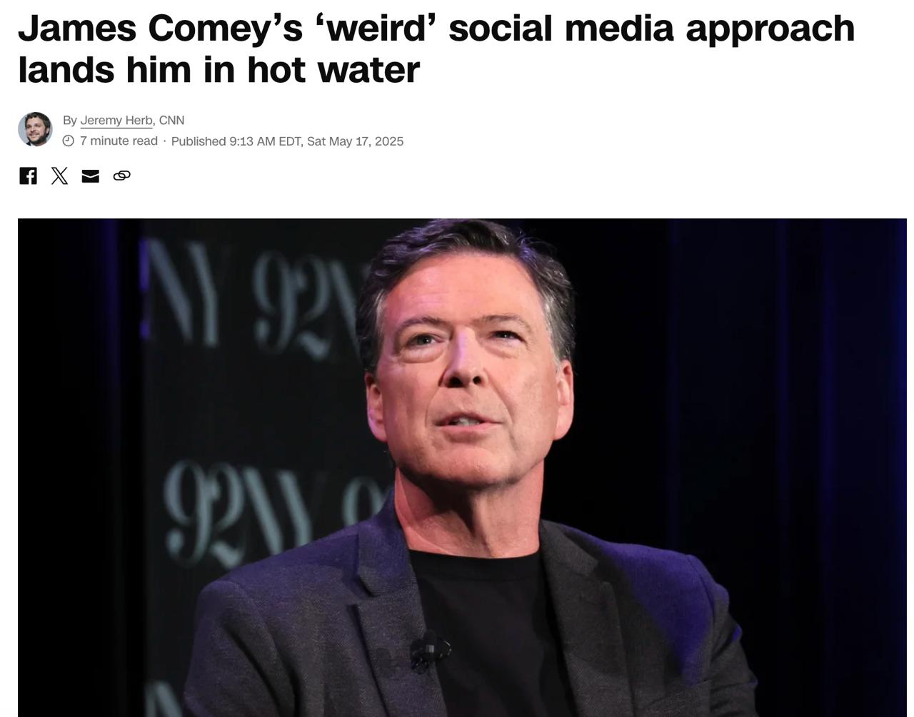 При этом в CNN отмечают, что экс-директор ФБР с 2017 года вел ряд анонимных аккаунтов в разных соцсетях, используя их для поддержки Джо Байдена и Камалы Харрис на выборах 2020 и 2024 годов. Он также публиковал там различные рассуждения о жизни, природе и творчестве.