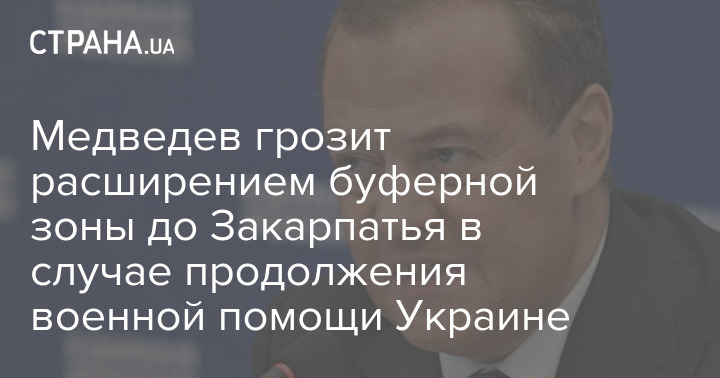 Заместитель председателя Совета безопасности РФ Дмитрий Медведев потребовал от западных партнёров Киева прекратить военную помощь ВСУ, пригрозив захватом почти всей территории Украины.