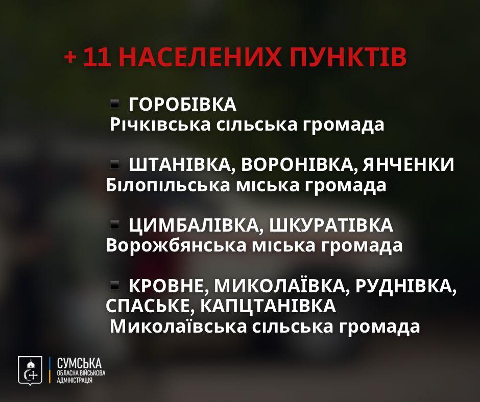 В Сумской области власти объявили об обязательной эвакуации населения еще из 11 населенных пунктов.