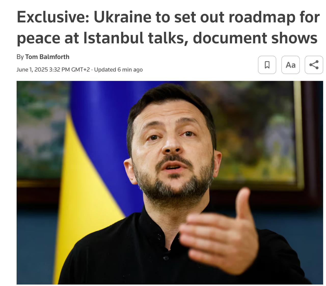 Напомним, сегодня Зеленский подтвердил, что завтра, 2 июня, Украина будет участвовать в переговорах с РФ в Стамбуле. Делегацию возглавит министр обороны Рустем Умеров.