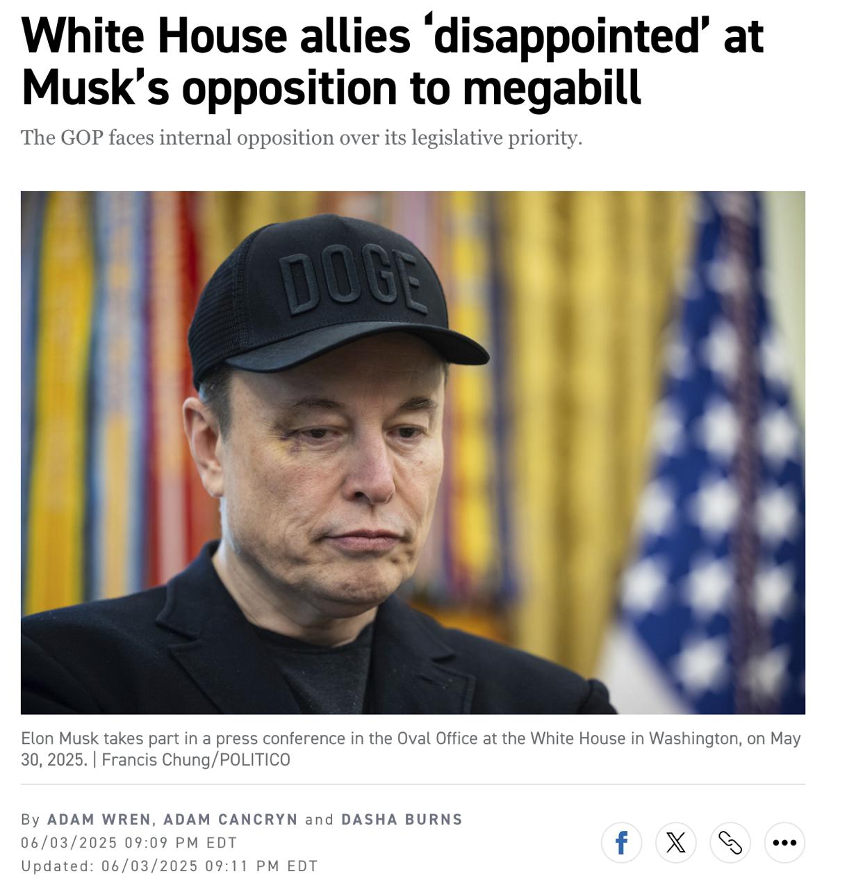 По словам близкого к Белому дому республиканца, Маска не стоит слушать, потому что упомянутый законопроект влияет на его бизнес.