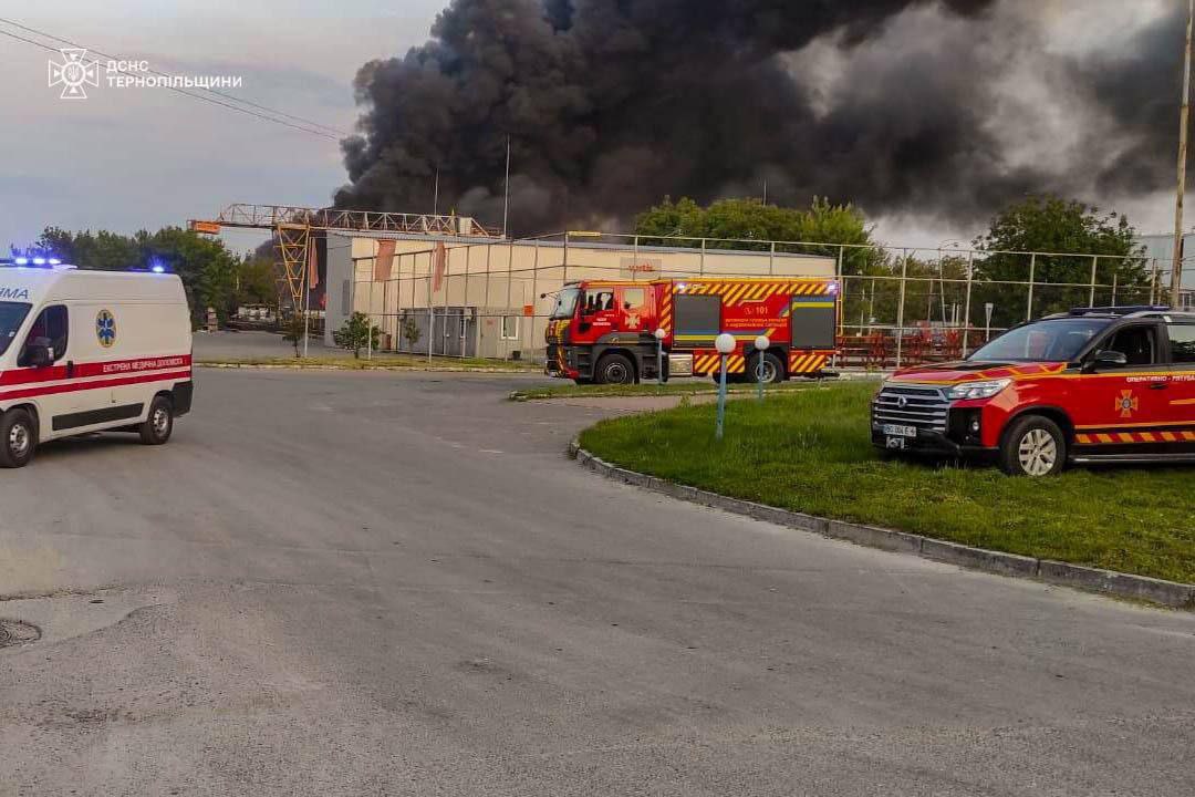 07:44 Кадры тушения пожара после удара по Тернополю.