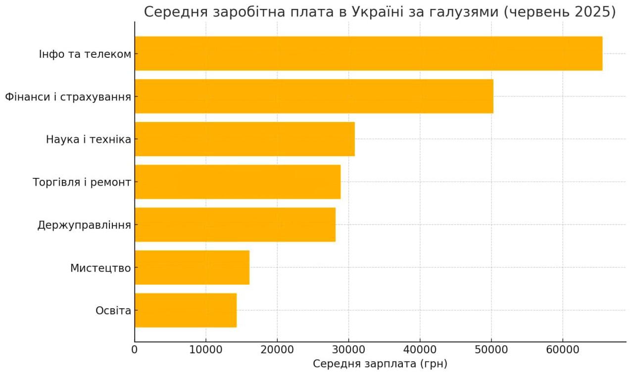 Самые низкие средние зарплаты в Украине выплачивают работникам образования (14 307 гривен) и искусства (16 101 гривен).