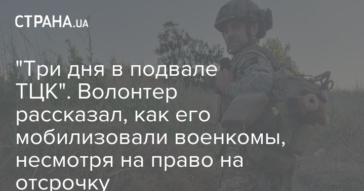 Украинский волонтёр Роман Замрий три дня удерживался в подвале в ТЦК и был мобилизован, хотя имел право на отсрочку.