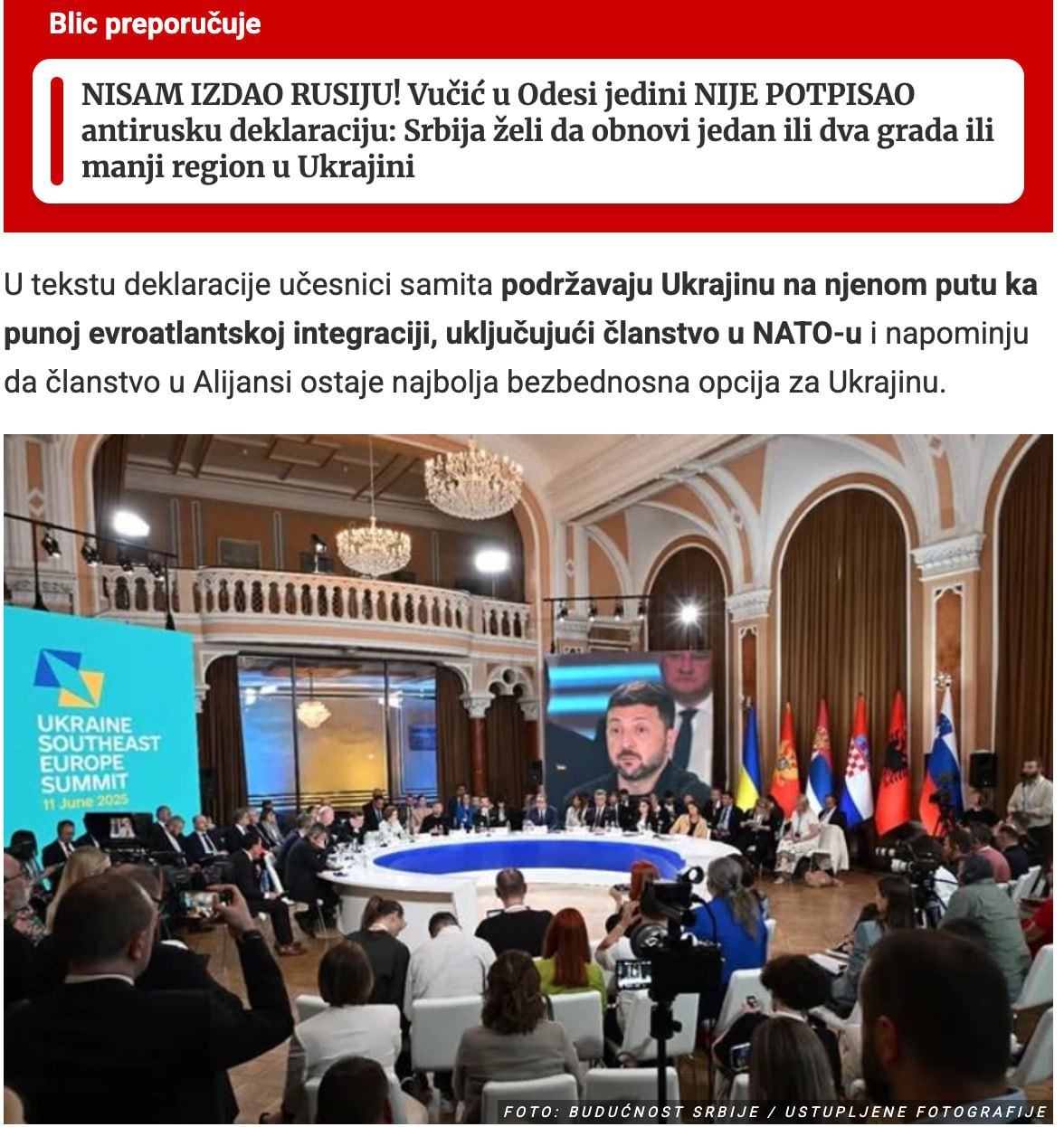 Как сам Вучич сообщил сербской прессе, он не подписал декларацию саммита, потому что в тексте есть требование наложить санкции на Россию.