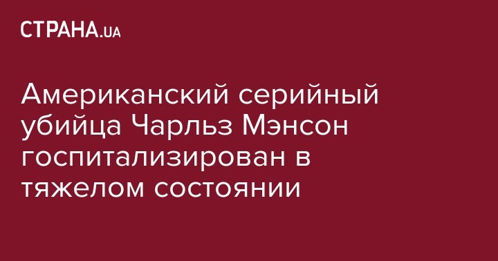 Американский серийный убийца Чарльз Мэнсон госпитализирован в тяжелом состоянии
