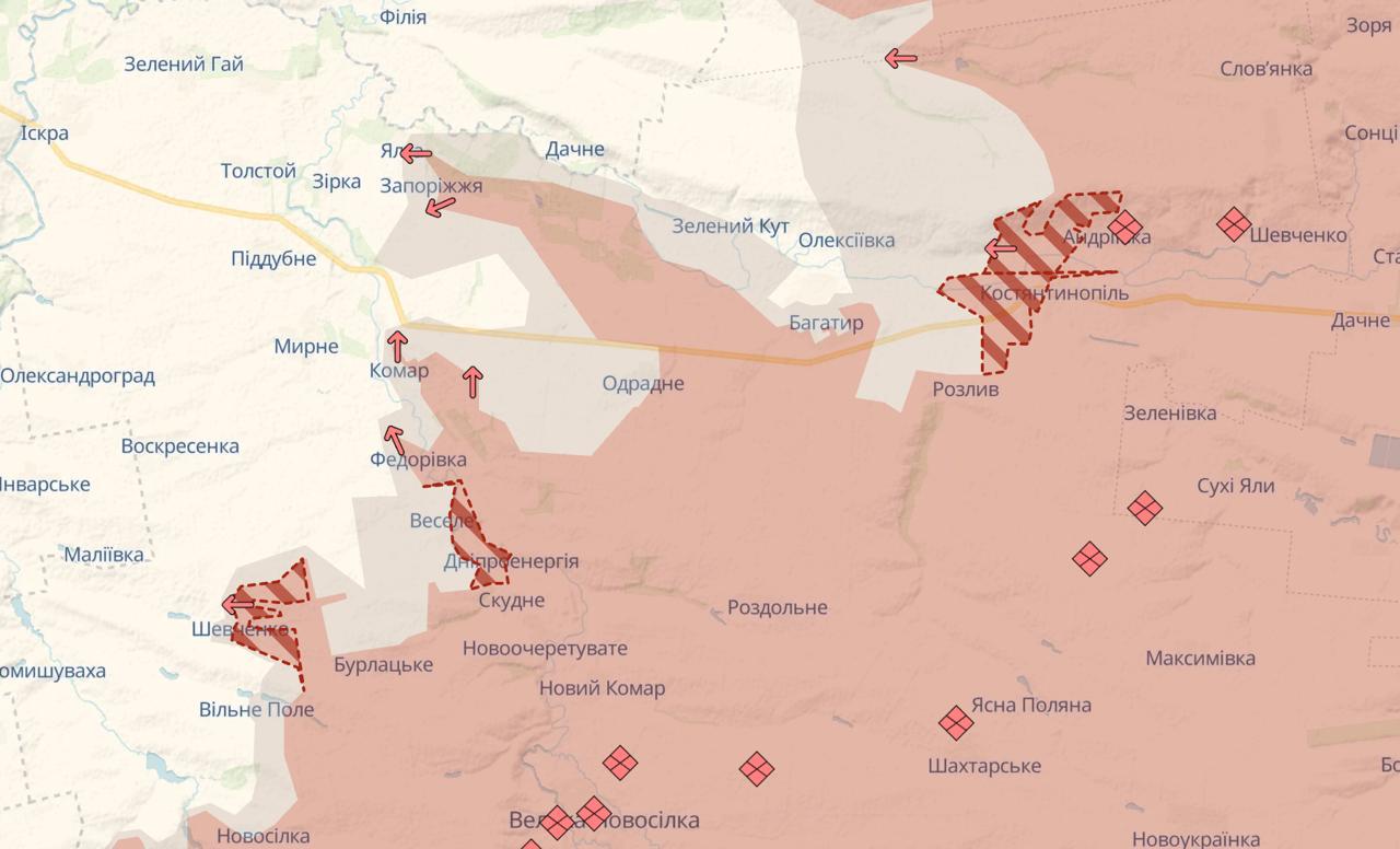 В частности, россияне захватили Андреевку и Константинополь, а также продвинулись севернее Новоселки в сторону Днепропетровской области.