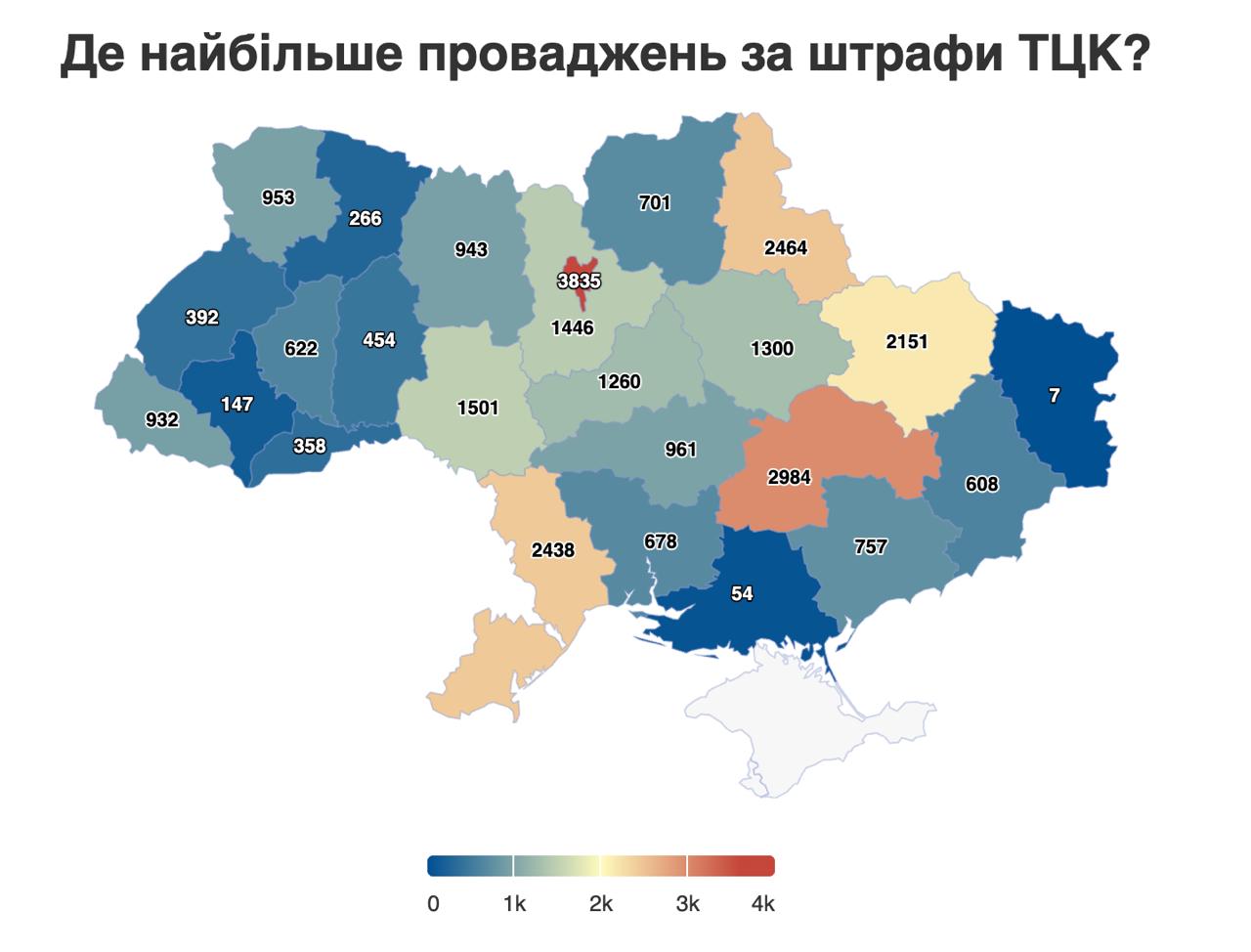Среди регионов больше всего штрафов выписывают в Киеве. А житель Черниговской области установил антирекорд, собрав 8 штрафов от ТЦК.