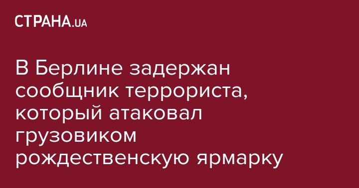 В Берлине задержан сообщник террориста, который атаковал грузовиком рождественскую ярмарку