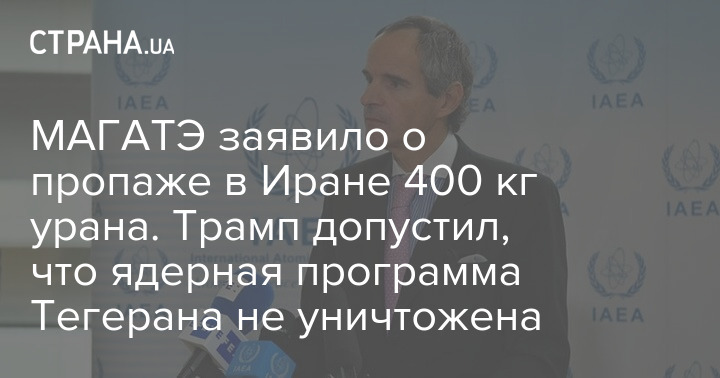 МАГАТЭ заявило о пропаже в Иране 400 кг урана. Трамп допустил, что ядерная программа Тегерана не уничтожена