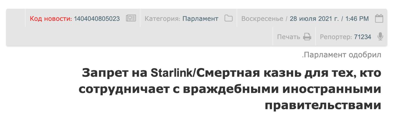 За использование, покупку, продажу, импорт, производство и распространение "с намерением противостоять системе" любых интернет-средств и коммуникационных устройств, не прошедших внутреннюю сертификацию, включая оборудование Starlink, будет светить штраф, удары плетью или даже тюремное заключение до двух лет, отмечает DPA.