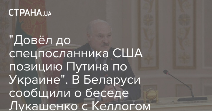 Глава Республики Беларусь Александр Лукашенко заявил, что "довёл до спецпосланника США Кита Келлога позицию Путина" по урегулированию конфликта России с Украиной.
