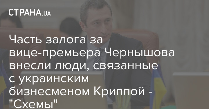 Как минимум часть 120 миллионов гривен залога за вице-премьер-министра и министра национального единства Алексея Чернышова внесли люди, связанные с украинским бизнесменом Максимом Криппой. 44 млн грн внесла директор по маркетингу группы компаний DIM Дарья Бедя.