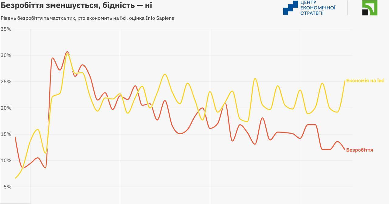 Бедность в Украине за месяц выросла до 25,2%, - то есть каждый четвертый украинец экономит на еде. Уровень безработицы в июне 2025 года снизился до самого низкого за время войны - 12%.