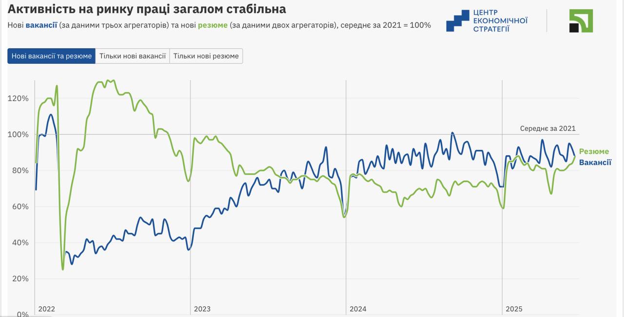Согласно им, в июне 2025 года уровень безработицы в Украине уменьшился до 12% — новый наименьший показатель с начала полномасштабной войны. Активность на рынке труда остается ниже, чем до полномасштабной войны.