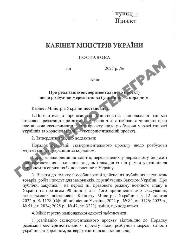 Целью проекта является единение украинцев за границей. Согласно постановлению, экспериментальный проект рассчитан на два года.