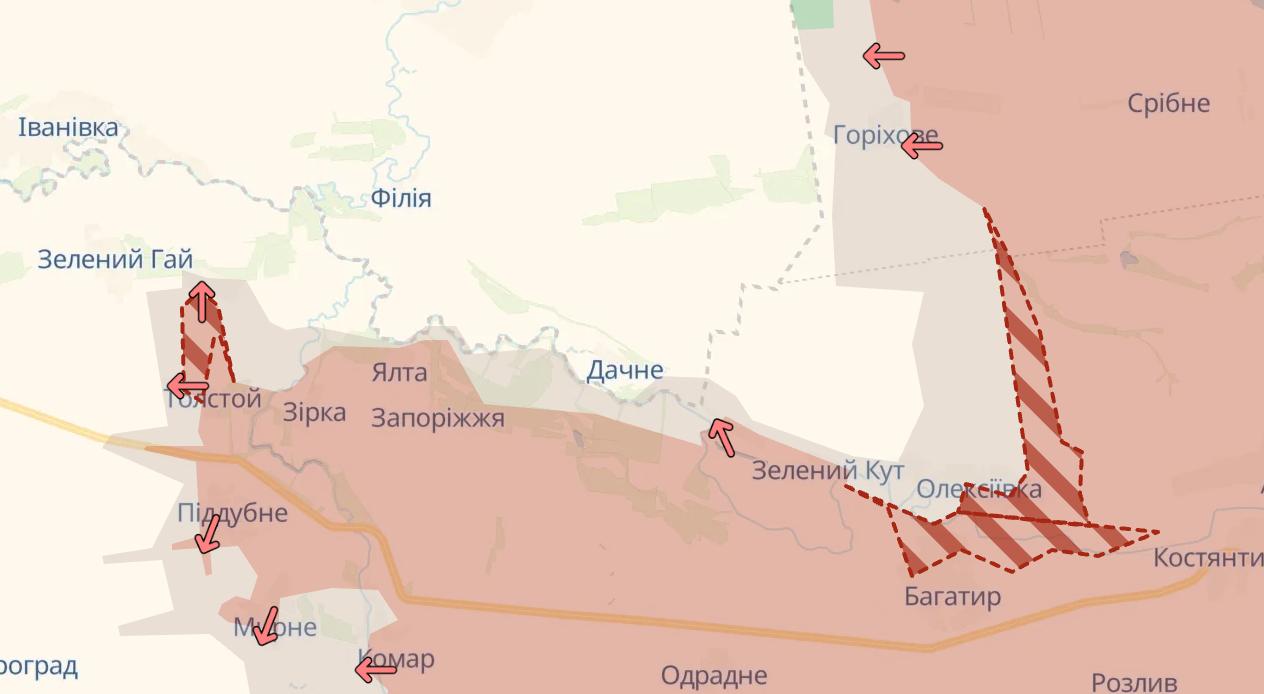 На Новопавловском направлении россияне захватили село Богатырь, а также продвинулись в Алексеевке. Ближе к границам Днепропетровской области - в Новохатском и Толстом.