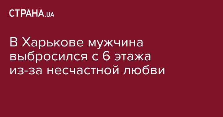 В Харькове 29-летний мужчина пытался покончить жизнь самоубийством и выпрыгнул из окна шестого этажа. Об этом сообщили в пресс-службе полиции Харьковской области.