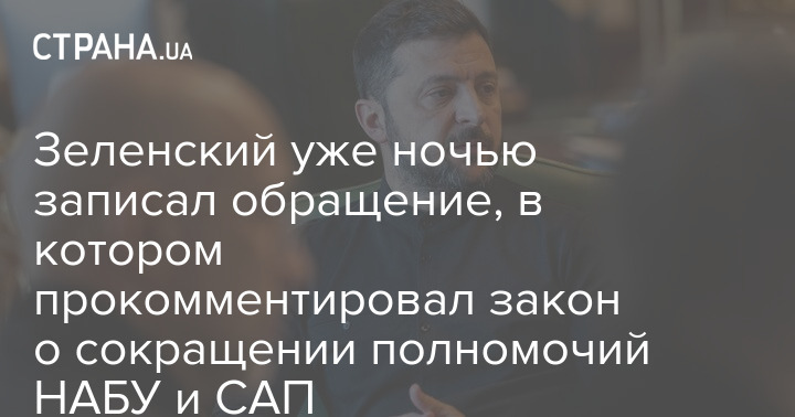 Президент Украины Владимир Зеленский уже ночью записал свое традиционное обращение, в котором прокомментировал закон о сокращении полномочий НАБУ и САП, которыми эти органы фактически переводятся под контроль Офиса генпрокурора. Он сделал упор на выдвинутых в адрес сотрудников НАБУ обвинениях в работе на РФ.