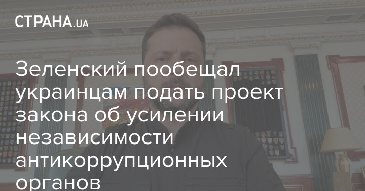 Владимир Зеленский заявил, что внесет в Верховную Раду законопроект, который должен усилить независимость антикоррупционных органов.