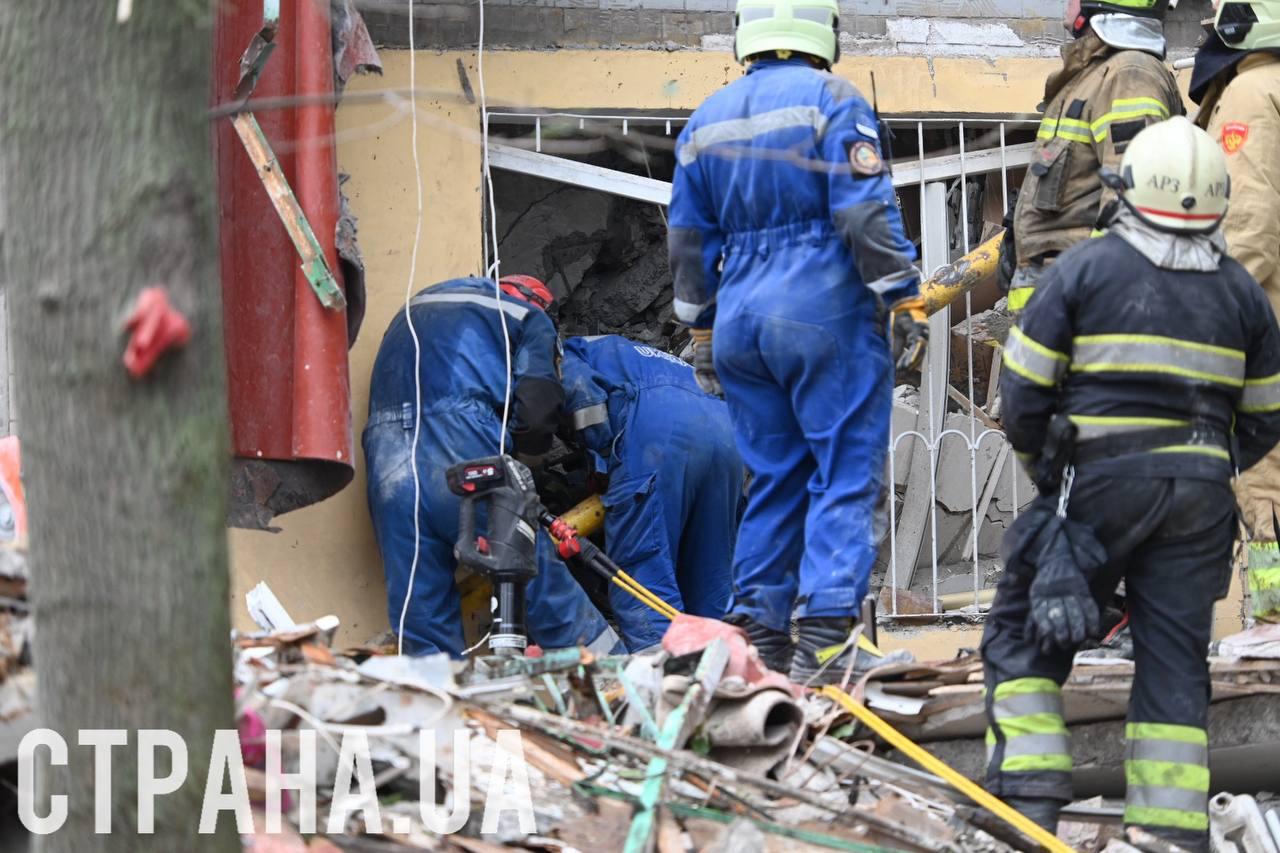 На месте также мэр Кличко. По его словам, только что из-под завалов достали ещё одного пострадавшего, он жив.