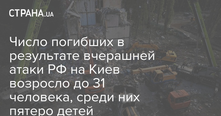 Число погибших в результате вчерашней атаки РФ на Киев возросло до 31 человека, среди них пятеро детей