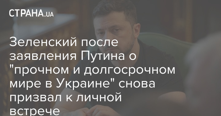 Зеленский после заявления Путина о "прочном и долгосрочном мире в Украине" снова призвал к личной встрече