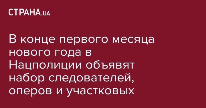 В конце первого месяца нового года в Нацполиции объявят набор следователей, оперов и участковых