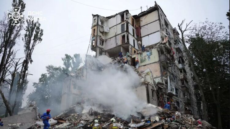 Последствия обстрела в Киеве. Фото: ГСЧС