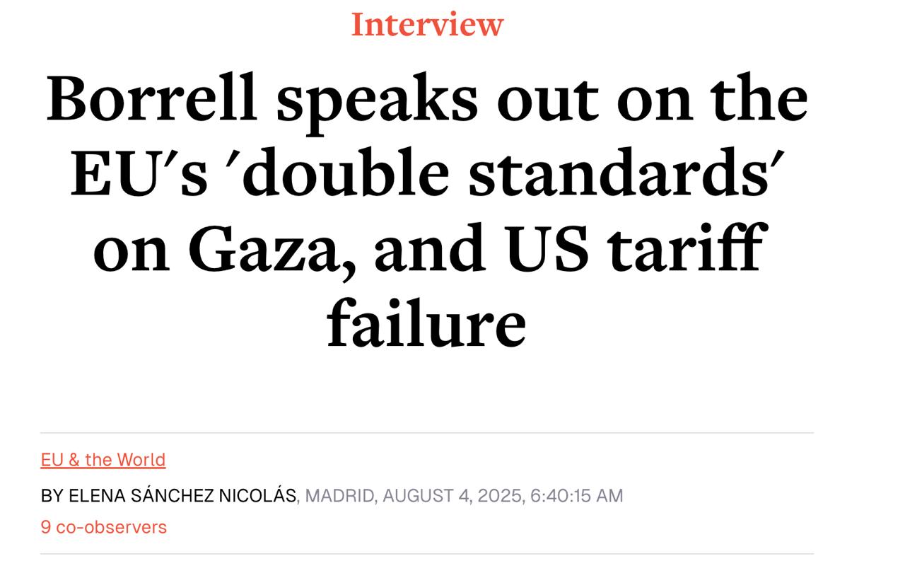 Об этом сообщил бывший верховный представитель Европейского Союза по иностранным делам и политике безопасности Жозеп Боррель в интервью EUObserver.