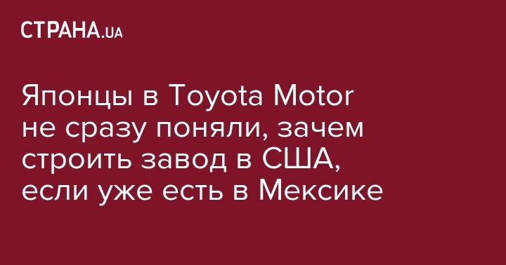 Японцы в Toyota Motor не сразу поняли, зачем строить завод в США, если уже есть в Мексике