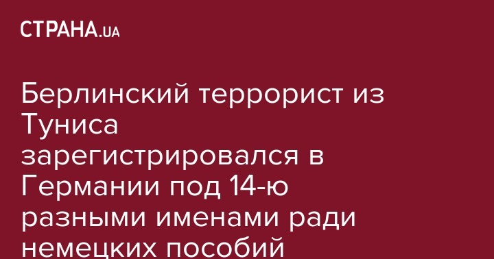 Берлинский террорист из Туниса зарегистрировался в Германии под 14-ю разными именами ради немецких пособий