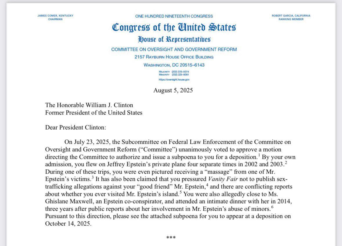 Билла и Хиллари Клинтон вызывают в конгресс США для дачи показаний по делу покончившего с собой в тюрьме финансиста Джеффри Эпштейна, которого обвиняли в организации секс-вечеринок для мировой элиты, в том числе с участием несовершеннолетних.