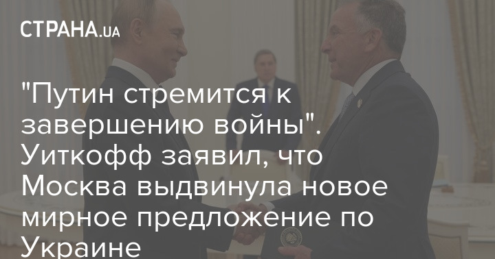 "Путин стремится к завершению войны". Уиткофф заявил, что Москва выдвинула новое мирное предложение по Украине