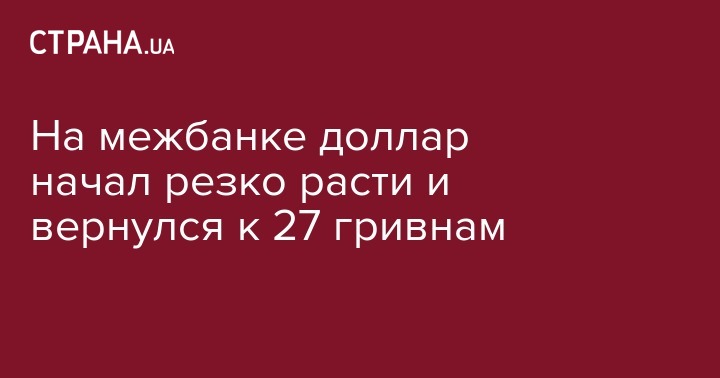 На межбанковском валютном рынке Украины курс доллара начал активно расти после падения 5 января. "Зеленый" подорожал за день на 80 копеек и вернулся к значениям 27 грн и выше, чего в новом 2017 году еще не происходило.