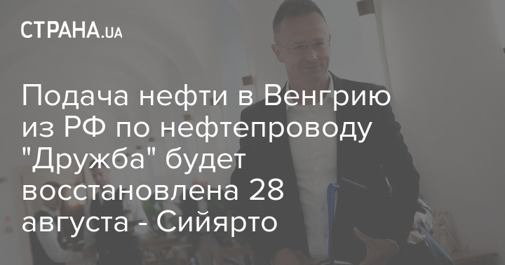 Подача нефти из России в Венгрию по нефтепроводу "Дружба" будет восстановлена 28 августа.