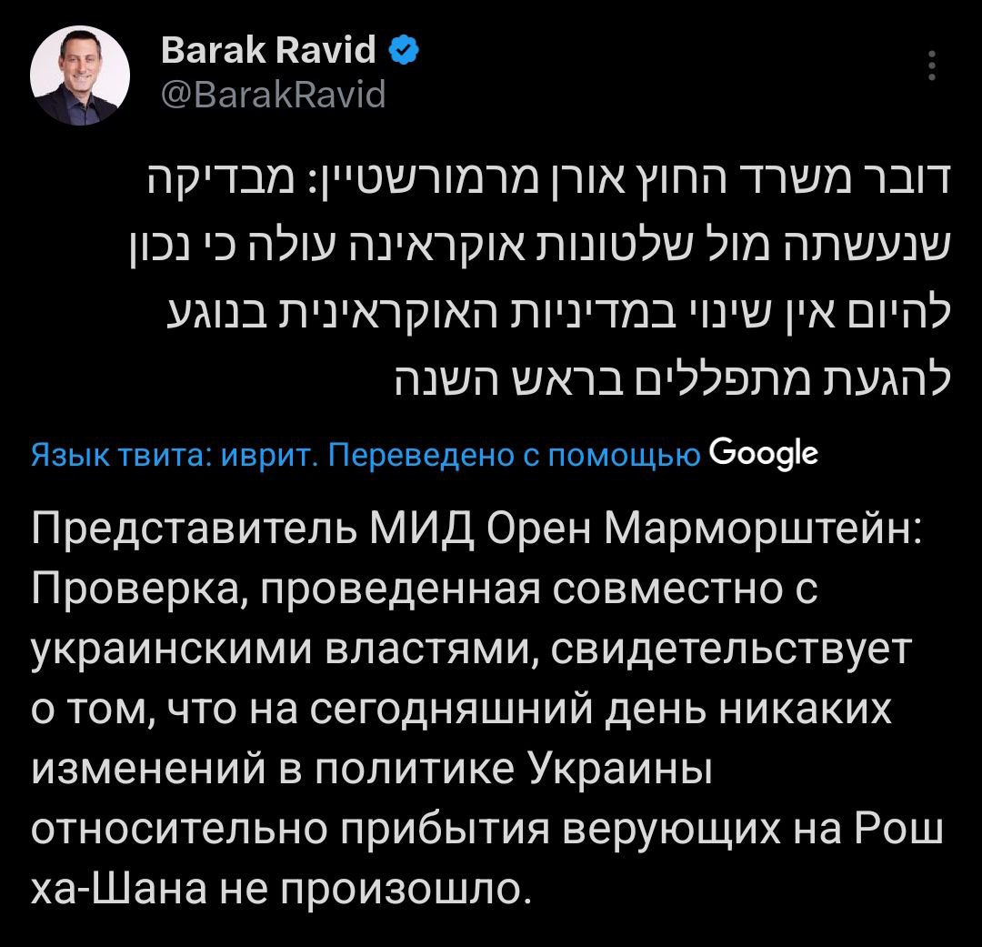 В то же время журналист Axios Барак Равид со ссылкой на МИД Израиля сообщил в соцсети X, что Украина не меняла своего подхода к приезду хасидов в Умань.
