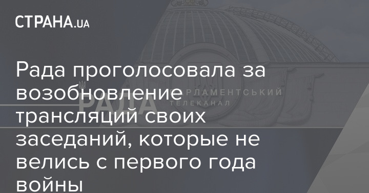 Верховная Рада поддержала постановление № 13719 о возобновлении прямых трансляций своих заседаний, которые не велись с начала войны. Трансляции будут идти на парламентском телеканале "Рада".