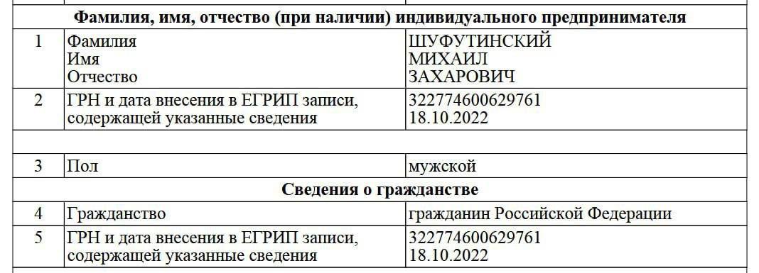 Об этом сообщают российские телеграм-каналы со ссылкой на выписку из налоговой службы.