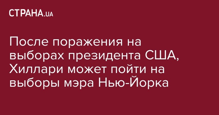 После поражения на выборах президента США, Хиллари может пойти на выборы мэра Нью-Йорка